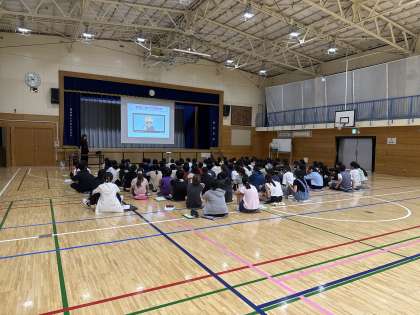 今日はネットリテラシー醸成講座を体育館で行いました。