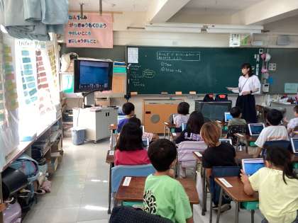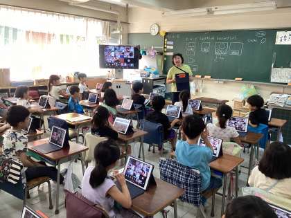 Teamsを使って、オンラインで朝の会で出席をとる練習をしました。