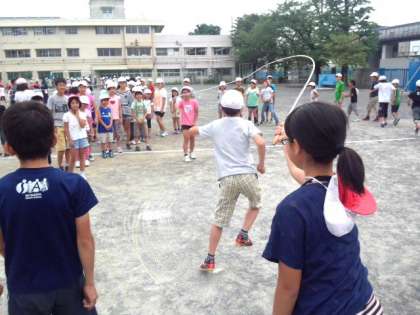 交流集会(3年生) 公開日 2012/06/18 更新日 2012/06/18 3年生 6年生と校庭で交流集会をしました。広い校庭で「震源地はだれだ」「大なわ」「ふえ鬼」をして楽しみました。(6月18日)