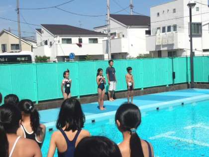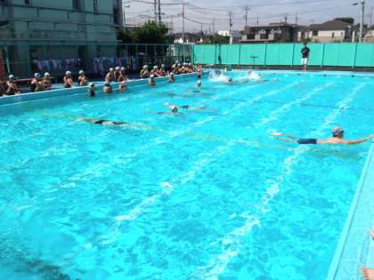 プール開きを行いました。その後、平泳ぎを中心に練習しました。(6月26日)