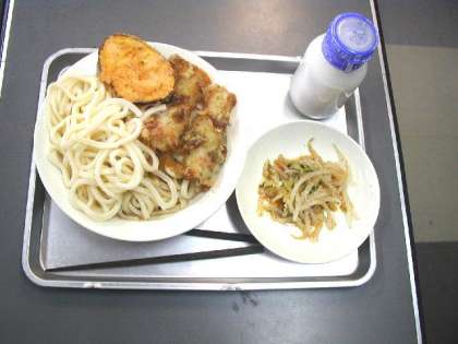 今日の給食 公開日 2012/07/11 更新日 2012/07/11 その他の教育活動 冷やしてんぷらうどんでした。暑い日だったので、うどんが冷たくておいしかったです。(7月10日) 《今日の食材産地》 卵:群馬 ねぎ:千葉 もやし:栃木 きゅうり:群馬 さつま芋:千葉