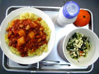 今日の給食 公開日 2012/07/12 更新日 2012/07/12 その他の教育活動 今日は、冷たい冷凍みかんがでました。(7月11日) 《今日の食材産地》 にんにく:青森 玉ねぎ:群馬 人参:千葉 じゃが芋:茨城 キャベツ:群馬 りんご:青森 小松菜:東京 豚ひき肉:神奈川