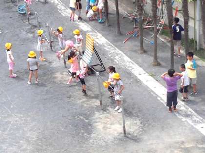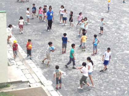 友達と鉄棒で遊んだり、クラスで大なわをしたりして元気に遊んでいます。(7月13日)