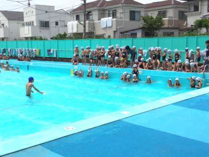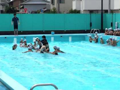 初めての夏休み水泳教室でした。場所を分かれて練習しました。(7月24日)