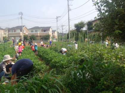 今日は、育てている作物の収穫をしました。雑草をぬいた後の収穫でしたが、みんなたくさんの収穫に喜んでいました。