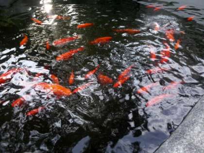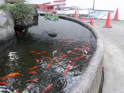 給食室の改修工事により、なかなか正門付近に近づくことができませんが、金魚はとても元気です。(8月17日)