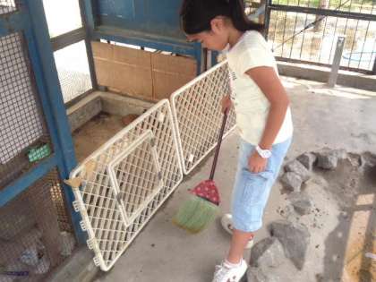 毎日、飼育委員会の子どもたちがウサギの世話に来ています。今日も、暑い中、しっかりと世話をしていました。(8月20日)
