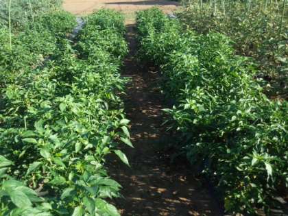 小つぶのピーマンが実っています。(8月21日)