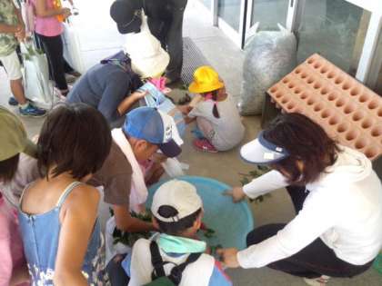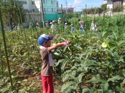今日は、収穫の日でした。モロヘイヤがたくさん収穫できました。(8月22日)