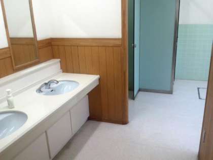 夏休み中、主事さんが各フロアの廊下やトイレにワックスをかけてきれいにしています。(8月26日)