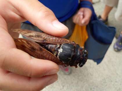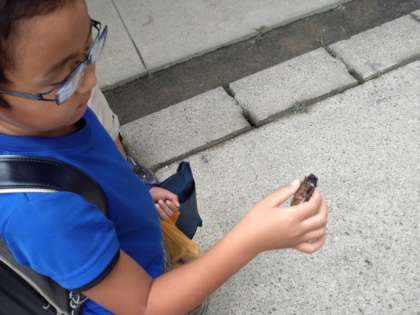 もう少しで、今年の夏も終わりです。登校途中で、セミを見つけた子どもがいました。(9月3日)
