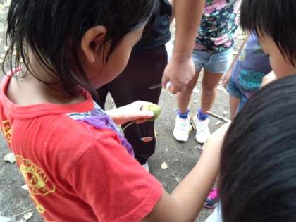 学校の校庭を散策して、どんな実がなっているか観察しました。(9月6日)