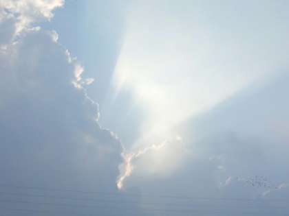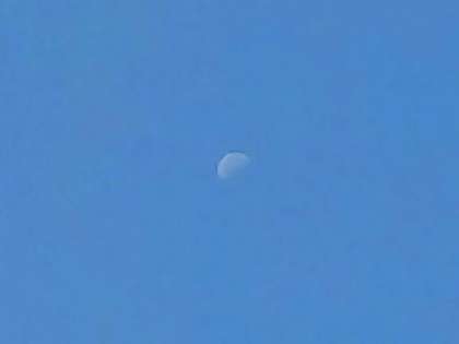 7時頃、西の空に下弦の月が見え、東には朝日がのぼってきました。(9月8日)