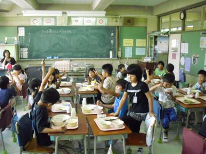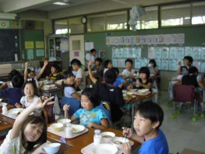 いつも、もりもり給食を食べてくれる2年4組です。とても元気いっぱいなクラスです。(9月11日)