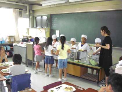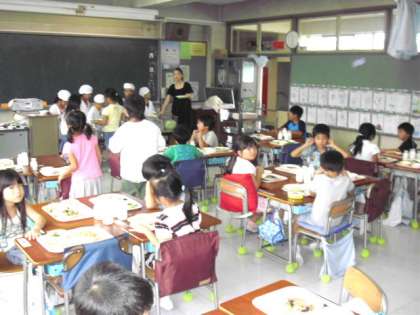 給食時間より 公開日 2012/09/19 更新日 2012/09/19 その他の教育活動 今日は、1年4組さんの様子を紹介します。身だしなみをきちんと整え、給食当番のお仕事を一生懸命にしています。(9月19日)