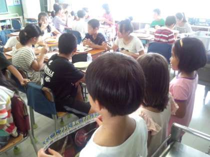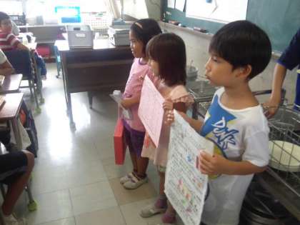 郵便局の仕事を体験するために、各クラスに説明に行きました。(9月19日)