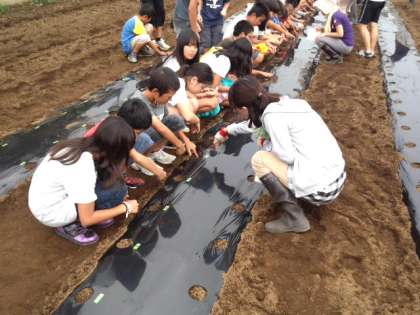 地域の方の協力により、大根の種を植えることができました。(9月21日)