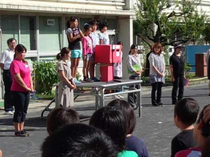 2年生が郵便配達を行います。児童朝会でお願いを発表しました。(9月24日)