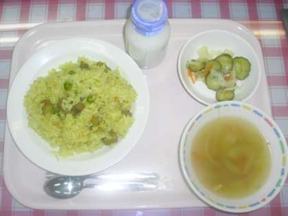 今日の給食 公開日 2012/09/29 更新日 2012/10/01 その他の教育活動 今日のメキシカンピラフにはカレー粉が入っていました。食欲が増す味付けでした。(9月28日) 《今日の食材産地》 たまねぎ:北海道 にんじん:北海道 じゃがいも北海道 カットさつまいも:千葉県 きゅうり:群馬県 小松菜:世田谷育ち 白菜:長野県 キャベツ:群馬県 鶏がら:青森県 りんご:青森県 ブラックタイガー:ベトナム カットしめじ:長野県