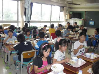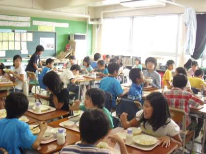 給食時間より 公開日 2012/10/02 更新日 2012/10/02 その他の教育活動 今日は、4年3組さんの様子を紹介します。みんな、静かに落ち着いて給食を食べています。さすが4年生です。(10月2日)