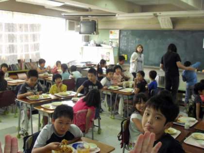 給食時間より 公開日 2012/10/13 更新日 2012/10/13 その他の教育活動 今日は、2年3組さんの様子を紹介します。スパゲッティーも大人気でしたが、サラダの食缶が1番最初に空になっていました。(10月12日)