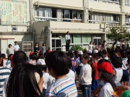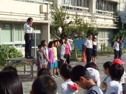 6年生の挨拶から児童朝会が始まりました。(10月15日)