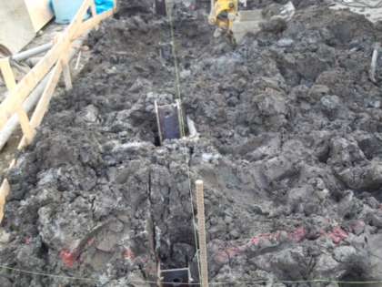 給食室を拡張するために、地盤にくいが打たれ始めました。(10月16日)