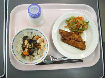 今日の給食 公開日 2012/10/17 更新日 2012/10/17 その他の教育活動 鶏飯が、味がしみこんでいておいしかったです。(10月17日) 《今日の食材産地》 たまねぎ:北海道 にんじん:北海道 じゃがいも:北海道 さやいんげん:福島県 ほうれん草:埼玉県 キャベツ:群馬県 豚ひき肉:神奈川県 鶏もも:鹿児島県 鶏むね:鹿児島県 鶏がら:青森県 さわら:韓国
