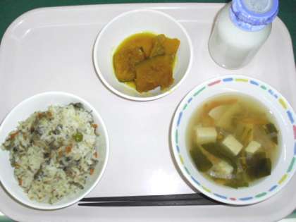 今日の給食 公開日 2012/10/23 更新日 2012/10/23 その他の教育活動 今日は、あさりがたっぷり入った深川飯でした。磯の香りがするおいしいご飯でした。(10月23日) 《今日の食材産地》 ごぼう:青森県 にんじん:北海道 じゃがいも:北海道 小松菜:せたがやそだち ねぎ:千葉県 カットかぼちゃ:北海道 もやし:神奈川県 豚ひき肉:神奈川県 みかん:愛媛県 鶏がら:青森県
