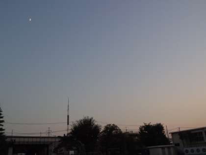 夕方、南の空に上弦の月が見え始めました。(10月22日)