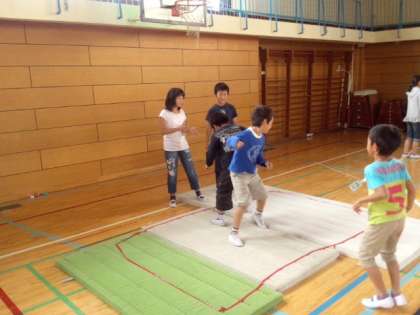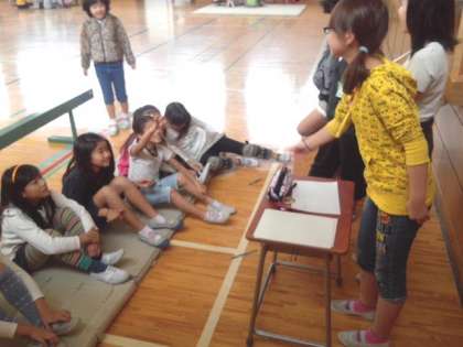 体育館で6年生のお兄さんやお姉さんが楽しい催し物を企画して招待してくれました。(10月22日)