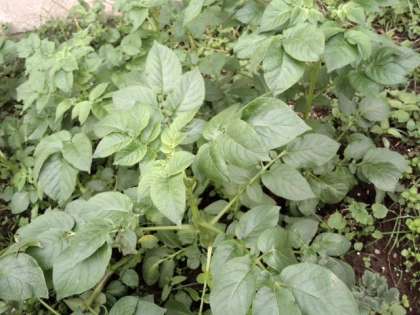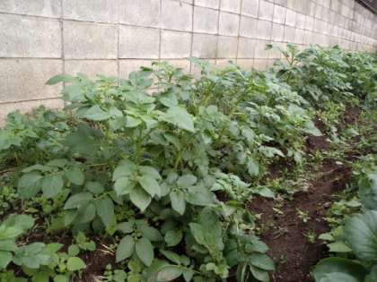 去年の6年生が植えて取り残したジャガイモが育っています。(10月25日)
