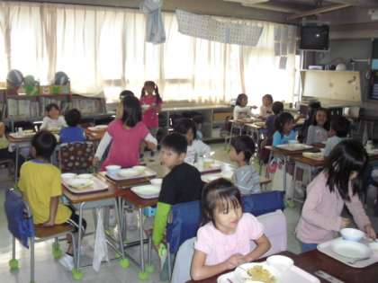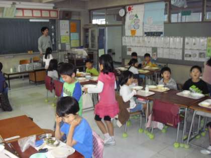 今日は、1年2組さんの様子を紹介します。まだ給食準備中のクラスもある中、早めの準備で、ゆっくり給食を食べられていました。野菜が嫌いな子も、ハムやチーズと一緒にがんばって野菜を食べていました。(10月29日)
