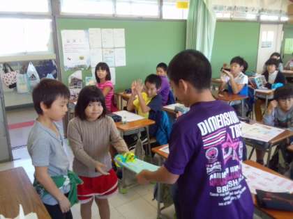 先日、6年生にお世話になったお礼に手紙を書きました。代表の子が届けました。(10月29日)