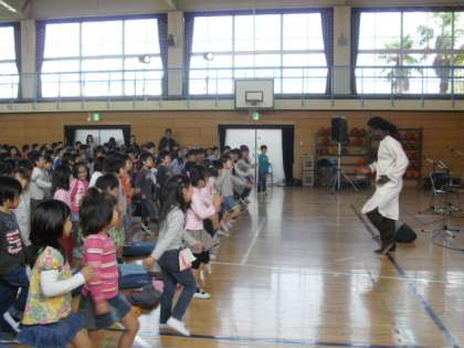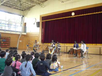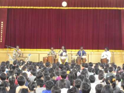 アフリカ、セネガルの音楽家が喜多見小学校で演奏を披露してくれました。(10月31日)