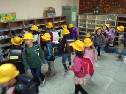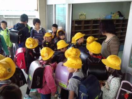 チャイムが鳴るまで並んで待っています。(11月13日)