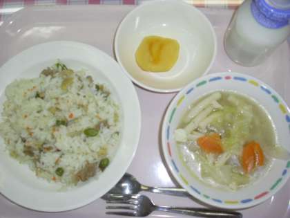 今日の給食 公開日 2012/11/14 更新日 2012/11/14 その他の教育活動 今日のスープにはマカロニがたくさん入っていて、ボリュームがありました。にんにくの味が効いていました。(11月14日) 《今日の食材産地》 たまねぎ:北海道 にんじん:北海道 じゃがいも:北海道 ごぼう:青森県 大豆:北海道 キャベツ:せたがやそだち、埼玉県 豚もも:宮崎県 鶏もも:鹿児島県 鶏ガラ:青森県 りんご:山形県 柿:新潟県