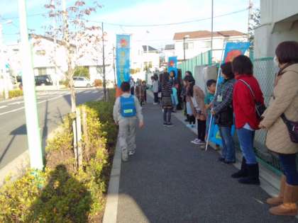 今日も、保護者の方と一緒にあいさつを行いました。(11月15日)
