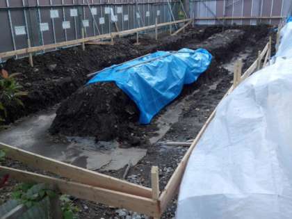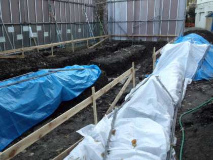 給食室の改修工事と同時に、労作小屋の改築が行われています。基礎を作っています。(11月17日)