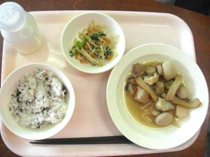 今日の給食 公開日 2012/11/20 更新日 2012/11/20 その他の教育活動 今日は、ご飯がでました。たくさんおかわりがあってみんなお腹がいっぱいになりました。(11月20日) 《今日の食材産地》 たまねぎ:北海道 にんじん:北海道 じゃがいも:北海道 ごぼう:青森県 小松菜:埼玉県 もやし:神奈川県 キャベツ:埼玉県 豚もも:宮崎県 鶏もも:宮崎、岩手県 里芋:宮崎県 鶏ガラ:青森県 キウイ:大分県