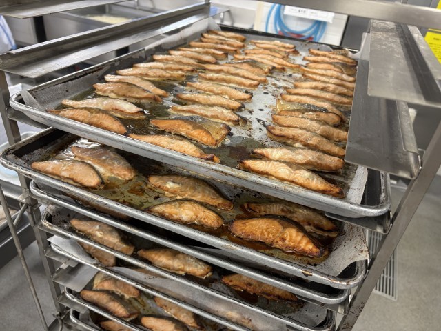 お酒や醤油などで下味をつけた鮭に、溶かしバターを一匹ずつ丁寧に塗ってこんがり焼き上げました。
