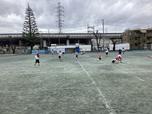 体育でなわとびをしました。最後は、みんなで長縄跳びをして何回跳べるか挑戦しました。