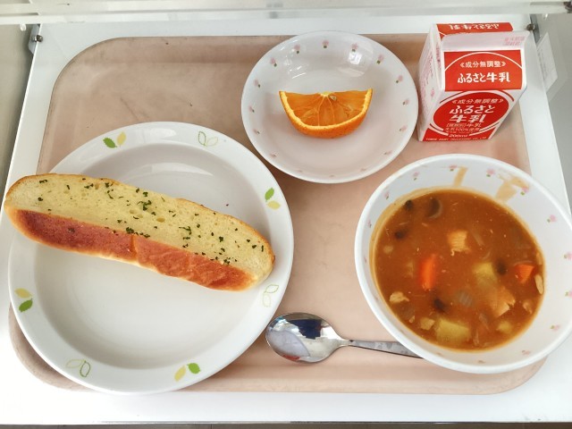 4月18日の給食 公開日 2025/04/21 更新日 2025/04/21 給食 【今日の献立】・ガーリックトースト・ビーンズシチュー・清見オレンジ・牛乳【使用した食材の主な産地】にんにく/青森 パセリ/茨城 たまねぎ/北海道 じゃがいも/北海道 にんじん/徳島 給食