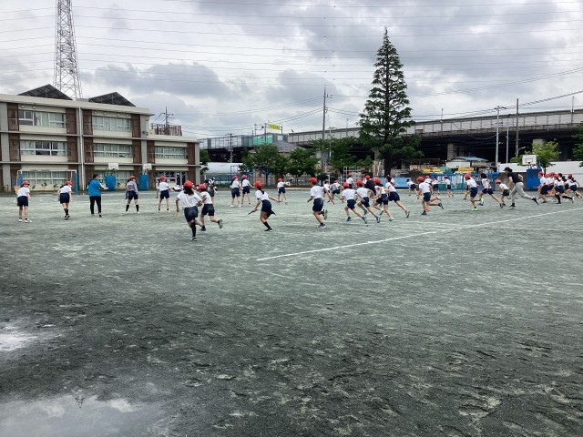 朝方に雨が上がったため、グラウンドのコンディションが悪いところがありましたが、ソーラン節とリレーの練習をしました。
