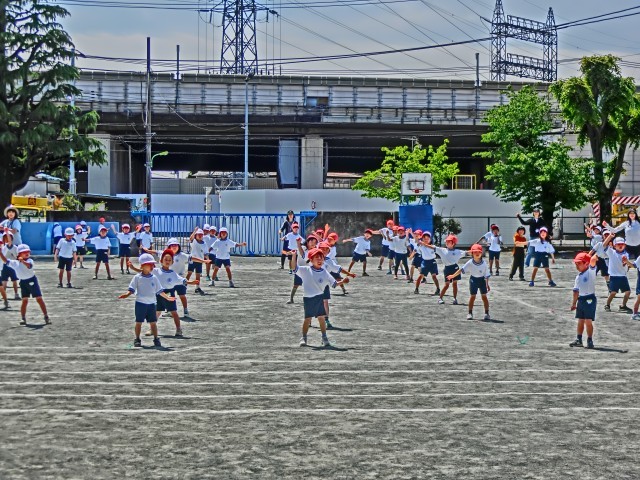 1年生の表現「レッツ ポケダンス」の練習風景です。
