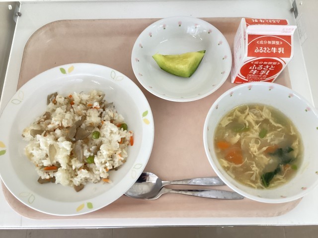 5月16日の給食 公開日 2025/05/16 更新日 2025/05/16 給食 【今日の献立】・鶏ごぼうピラフ・卵とコーンのスープ・メロン・牛乳【使用した食材の主な産地】ごぼう/青森 にんじん/徳島 たまねぎ/佐賀 こまつな/埼玉 給食
