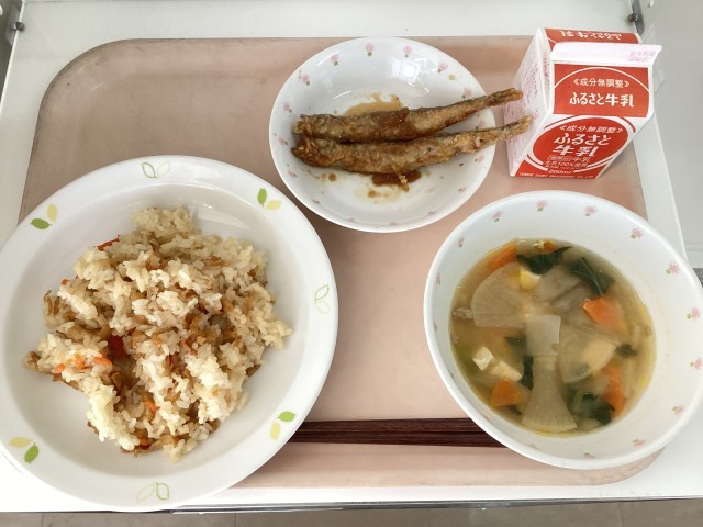 5月20日の給食 公開日 2025/05/20 更新日 2025/05/20 給食 【今日の献立】・こぎつねごはん・ししゃもの南蛮漬け・豚汁・牛乳【使用した食材の主な産地】にんじん/徳島 ねぎ/茨城 だいこん/千葉 ごぼう/青森 こまつな/埼玉 給食