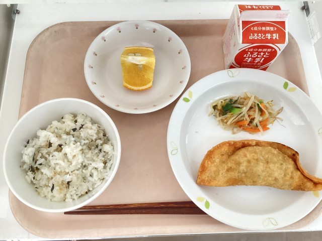 5月23日の給食 公開日 2025/05/23 更新日 2025/05/28 給食 【今日の献立】・わかめじゃこごはん・ジャンボぎょうざ・塩ナムル・甘夏・牛乳【使用した食材の主な産地】キャベツ/東京 ねぎ/茨城 にら/茨城 しょうが/高知 にんにく/青森 もやし/群馬 こまつな/埼玉 にんじん/徳島 給食