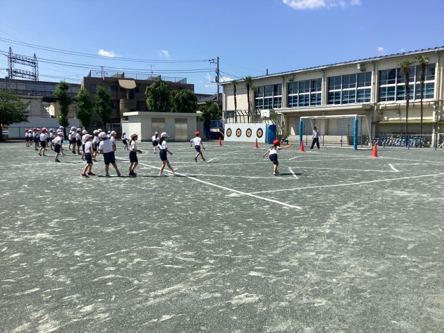1時間目は1組、2時間目は2・3組が校庭で体育でした。