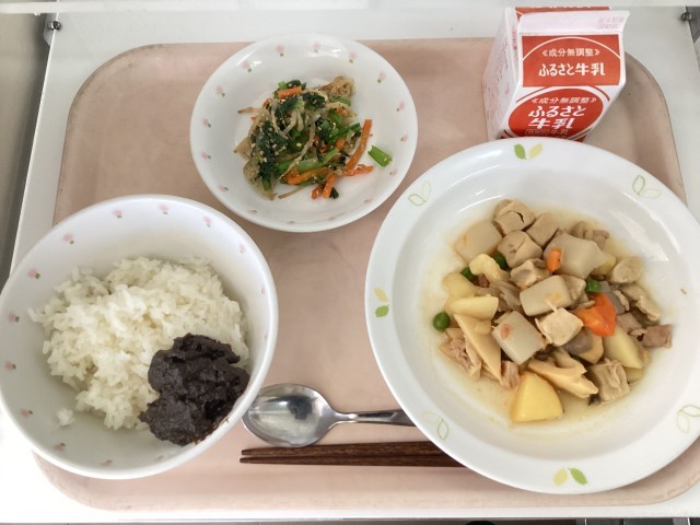 6月5日の給食 公開日 2025/06/05 更新日 2025/06/05 給食 【今日の献立】・ごはん・のりの佃煮・筑前煮・野菜のごま和え・牛乳【使用した食材の主な産地】しょうが/高知 にんじん/徳島 ごぼう/青森 じゃがいも/長崎 こまつな/埼玉 もやし/栃木 給食